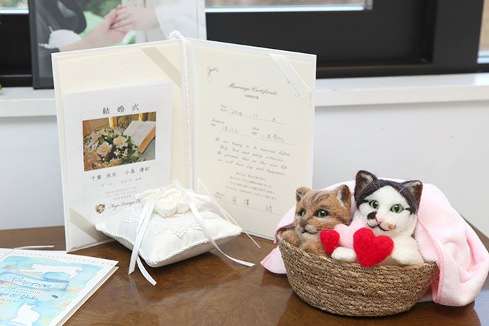 お互い実家で飼っている猫の人形を羊毛フェルトで手作りされたクオリティの高い手作りアイテムです。きっとお顔も似てるんでしょうね♡かわいすぎです!