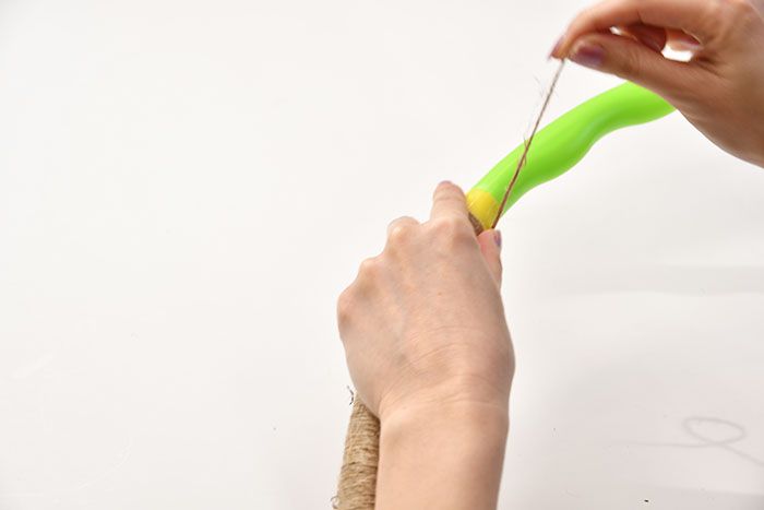 同じように麻ひもを巻いていき、リーフも巻いていきます。