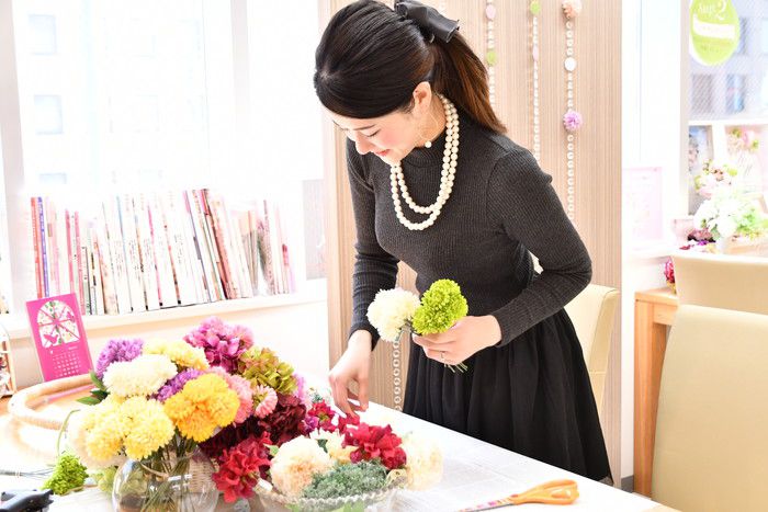 今回お花を選ぶところから。仕上がりをイメージしながら慎重にチョイス。