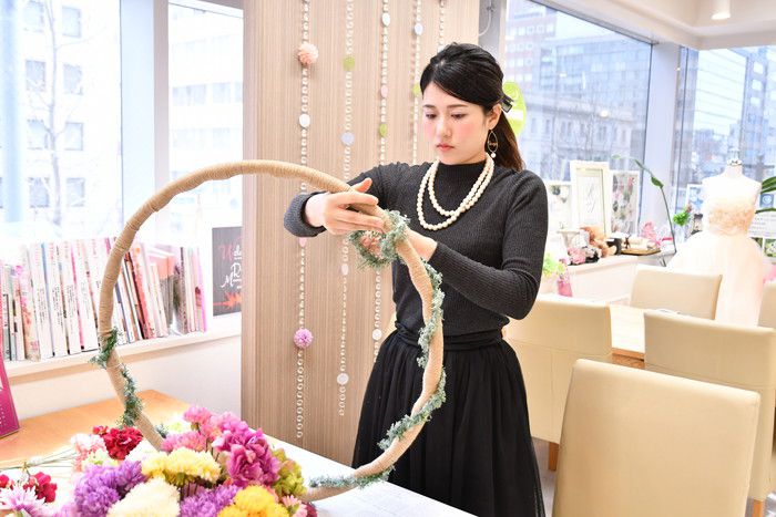 少しぐらい巻き方が斜めになって、重なったりきれいにならなくても、そこはご愛嬌♡そのあとお花をアレンジするので隠れるし、そんなに気にならない!
