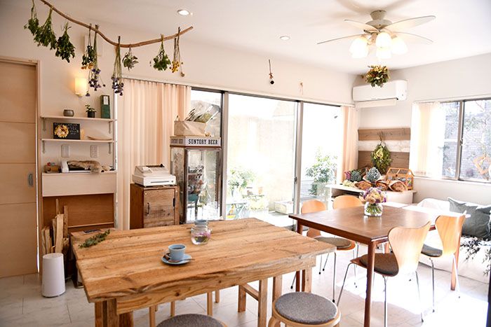 自宅の一角のアトリエは、足を踏み入れた瞬間、だれもが思わず“ステキ”って口にしてしまうナチュラルで落ち着きのある空間です。