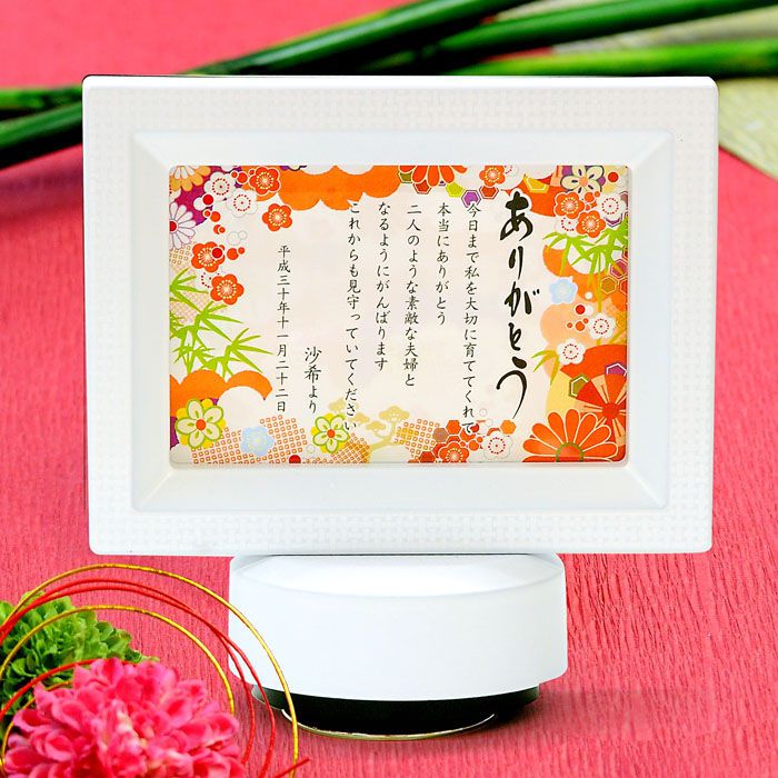 結婚式で渡す特別なギフトだから「メッセージが入れられるものがいい」「写真が入れられるものがいい」という方が多いんです♡