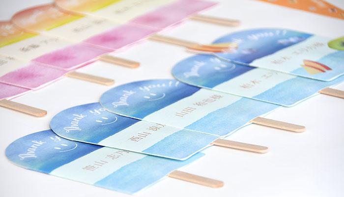 なんとなんと!遊びゴコロがたっぷり♡「アイスキャンディ」型の席札です。