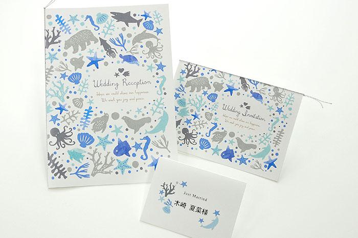 海のデザインを可愛らしく取り入れたい方にオススメ♡ペンギンやイルカ、水辺の可愛い仲間たちがふたりの結婚式を涼やか&キュートにお祝いしてくれます。