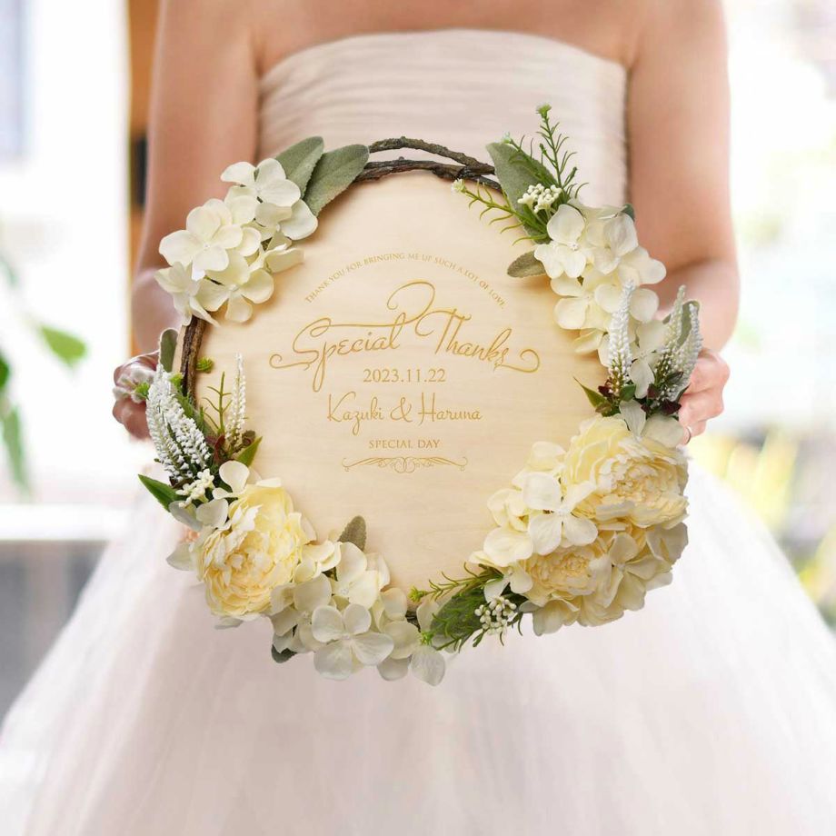「〇〇家△△家披露宴場」という立て札だけやウェルカムボード無しだと、いざ当日になると「殺風景だな」と感じる人も多いみたいです。