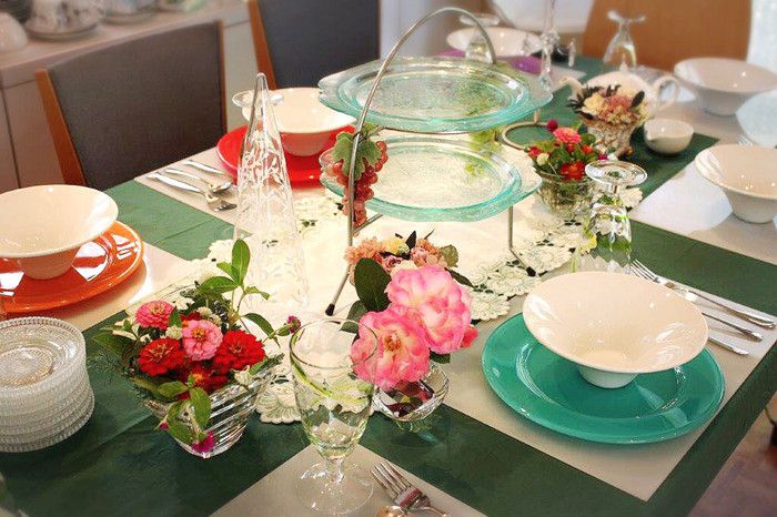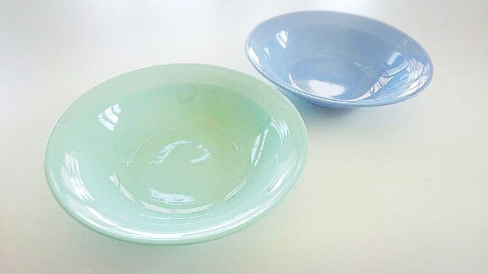 例えば同じサイズのお皿をグリーンとブルーの二色で揃えます。