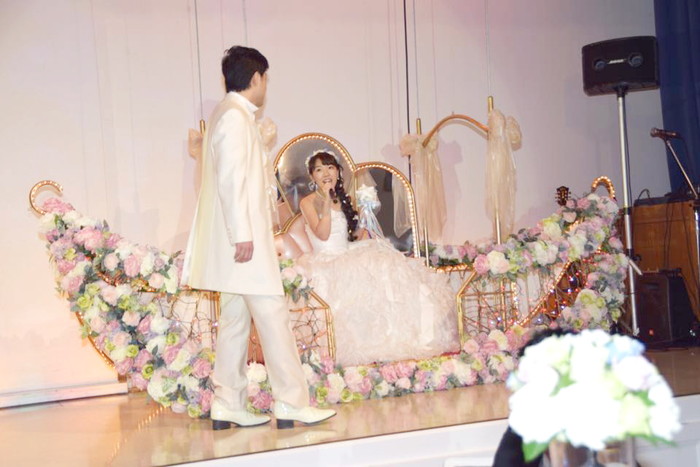 もともと、新郎さまは、音楽活動をされていて、ライブなど人前で歌うのが大得意だったため、堂々とクリスハートそっくりな歌声で歌い、会場は大盛りあがり!