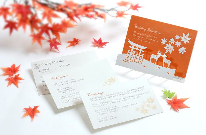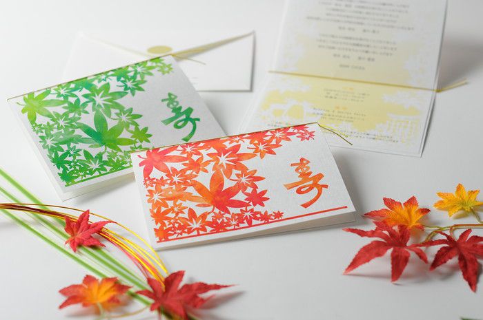 秋の象徴である紅葉を添えた招待状です。