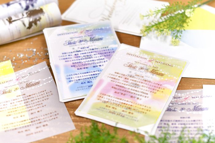 透け感のあるトレーシングペーパーを使った招待状や夏モチーフが入ったものなどもおススメです。