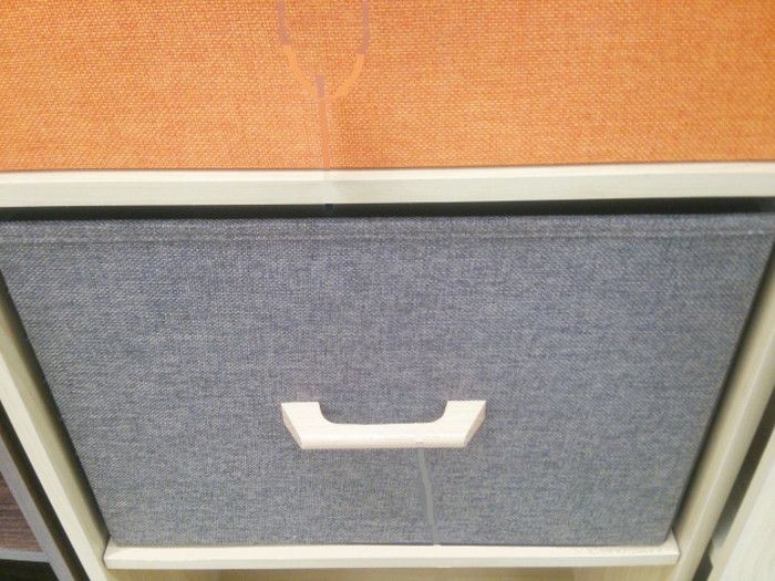 例えば、上部の棚(箱の中画見えない高さ)に収納ボックスを並べた場合、ボックスに持ち手があるタイプだといいですが、なければボックスを持って引き出さなければなりません。手や指が入る隙間がないと、取り出すのに不便です。