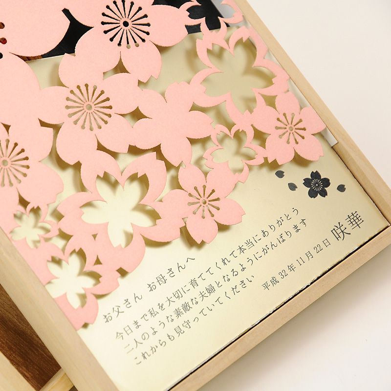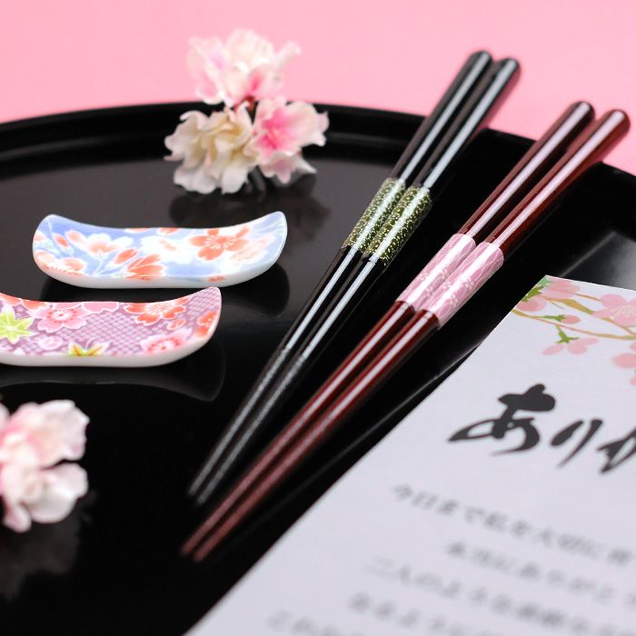 こちらも箸置きとのセットでデザインがやさしい桜柄♡職人による漆塗りで、使いやすい滑りどめつきのお箸です。メッセージカードにも桜があしらわれています♡