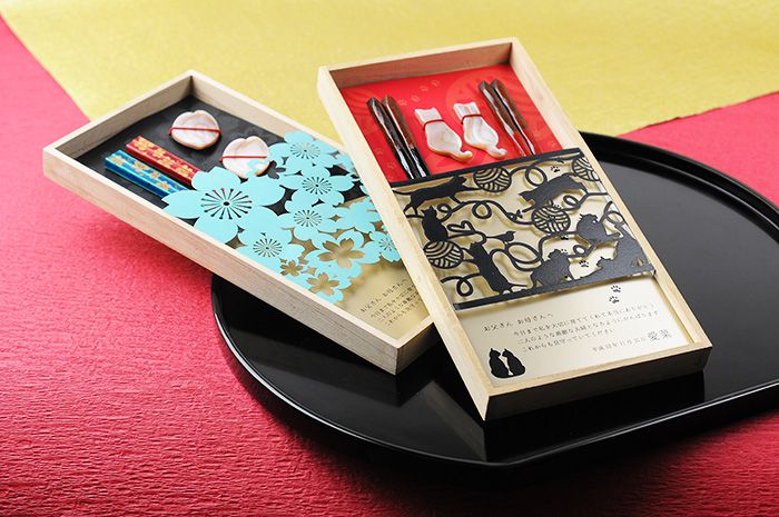 ファルベの箸ギフトの中でもこちらの新作「カットデザインシリーズ」はパッケージにもうっとり♡この切り絵デザイン!繊細なカットワークと陰影が美しすぎます。