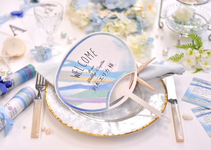夏の結婚式のおもてなしにぴったり〈 涼 〉がとれるペーパーアイテムうちわ