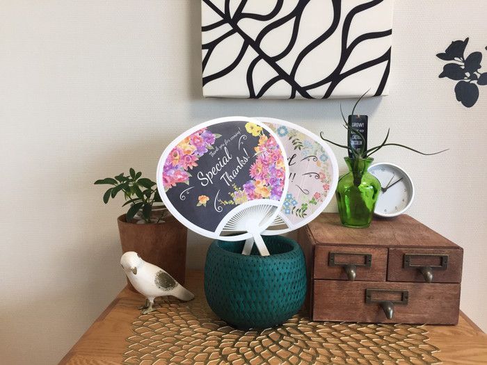 自分の名前入りのMYうちわなんて絶対大切にとっておきたいですよね♡結婚式後も何かと役に立ててもらえるそんなアイテムが<席札うちわ>です。