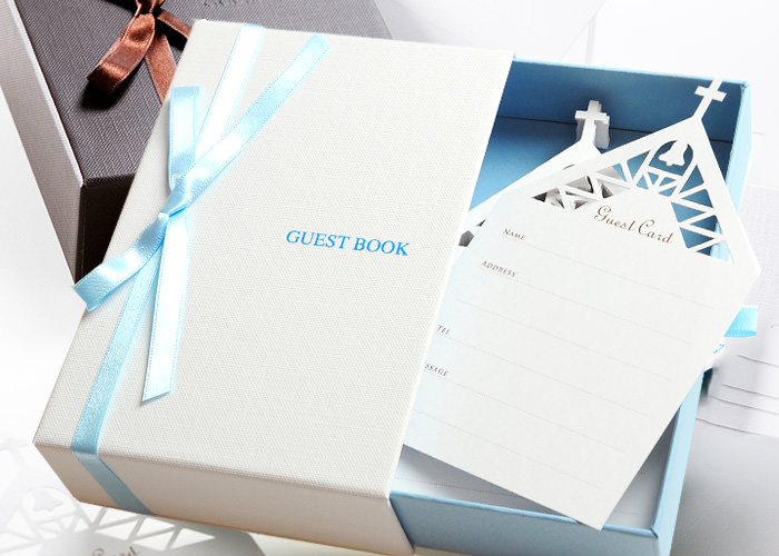 こちらは可愛らしいチャペルの形のデザインカード。ステンドグラスの窓を切り抜いた繊細なデザインにうっとり♡ホワイトorブラウンの収納ボックスもおしゃれ!