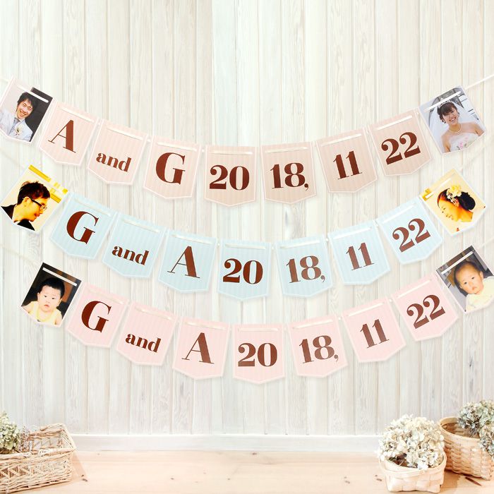 ウェルカムスペースをおしゃれに演出できるガーランド。こちらのガーランドならお写真を入れて作れちゃいます♡ステキなお写真でゲストをお出迎えして!