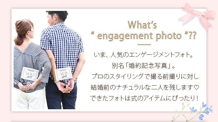 いかがでしたか?結婚式のときのお写真とは違い、普段着のおふたりのさりげない姿を映すから愛あふれるすっごく素敵な瞬間が残せるそうなんです♡ふたりでコーデを考えたり、ポーズを考えたり、楽しさもいっぱいのエンゲージメントフォト。思い出の場所やいつもデートで行くお気に入りのあの場所。いろんな”普段着”のふたりをお写真におさめて一生の宝物にしてみては?