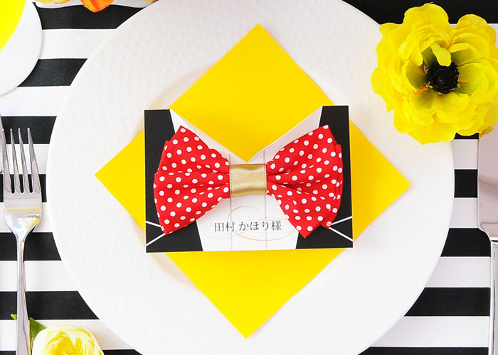 男性ゲストにとって、真夏にスーツというのは結構苦痛なもの。せめてジャケットだけでも脱げれば…というのが正直な気持ちかもしれません。会場や結婚式のテーマにもよりますが、夏のウェディングはいわゆる上下スーツのフォーマルで堅苦しい装いではなく、ジャケットを脱いだラフなスタイルなど、快適に過ごしてもらうためのスタイル提案をしてみてもいいでしょう。カジュアルなウェディングの場合は、ハーフパンツ&シャツに蝶ネクタイなど、設定するドレスコードを夏らしく涼しい装いにすると、ゲストも快適に過ごせるはず!