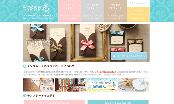 ファルベではふたつのテンプレートサイトを運営しています。ひとつはファルベのペーパーアイテム手作りキットを購入された方のための豪華×プチプラを叶える、かしこいプレ花さんのための購入特典テンプレートサイト。