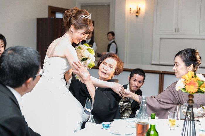 また、お色直し前の退場はおばあちゃんと一緒にされたそう。