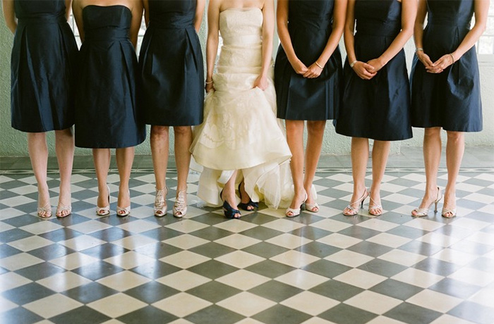 ブライズメイドの衣装をネイビーに統一すると、コーディネート全体がキュッと引き締まって大人っぽくスタイリッシュな印象に。オールシーズン使いやすいネイビーは、衣装でも取り入れやすいというものうれしいポイントです。グルームズマンはスーツをネイビーにしなくとも、蝶ネクタイやネクタイなどの小物で取り入れるだけでも十分。