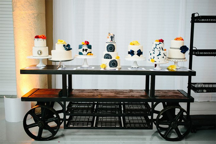 ウェディングケーキにネイビーのデコレーションはなかなか珍しいもの。ネイビーは白によく映えるので、全体の色使いが少なくてもとっても華やかです。ポイントカラーとして足すだけで大人っぽくおしゃれにセンスアップできちゃうので、ケーキのデコレーションカラーにもぜひ取り入れてみて!