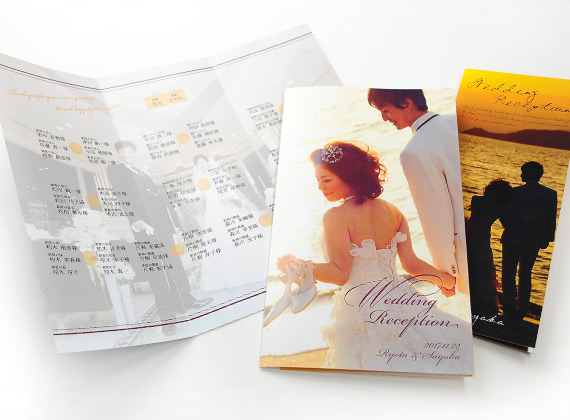 当日マストなペーパーアイテムもせっかくゲストの目に触れるものだから、中に写真を入れるだけじゃなくてどーんと表紙にしちゃいましょう。こちらは、お写真を主役にしておふたりのベストショットを一番美しく見せるよう専門のデザイナーが作ってくれる席次表です。