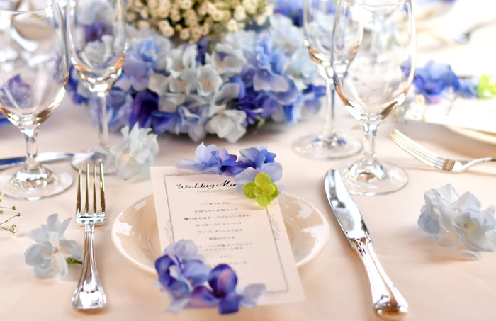 次におススメなのが、アジサイ。アジサイは6月の印象で雨などちょっぴり不を連想してしまいがちですが、実は家族団欒などの意味を持つウェディングにも適した商材です。