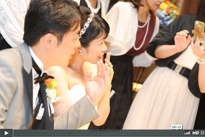 また、この撮って出しのエンドロールに、ゲストへのメッセージを一人一人いれるという新郎新婦からのサプライズも、ゲストにとても喜んでいただける演出です!