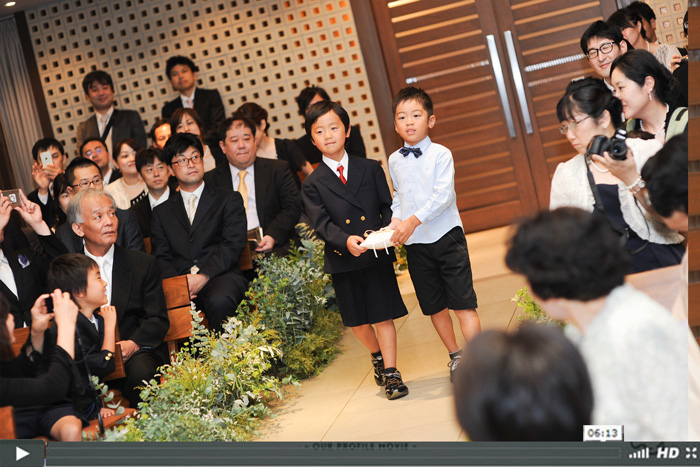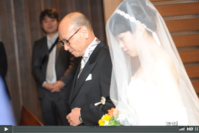 こちらは、結婚式当日に撮影される映像を、挙式の最中に編集してもらって、エンドロールとして流すパターンです。