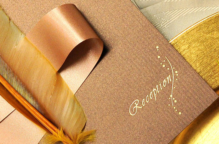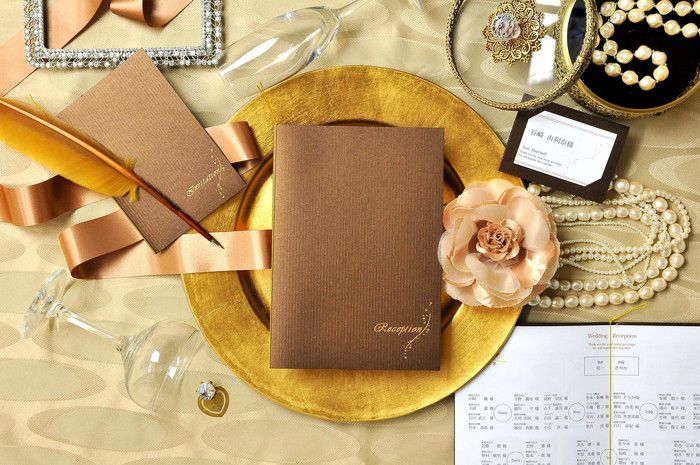 ゴールドのReceptionの文字がエレガントさを添えています。ブラウン×ゴールドでまさに大人のおしゃれを演出できます。