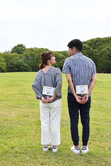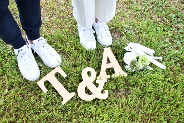 エンゲージメントフォトの定番といえば小物使い。イニシャルオブジェを使ったりフォトプロップスも定番中の定番。