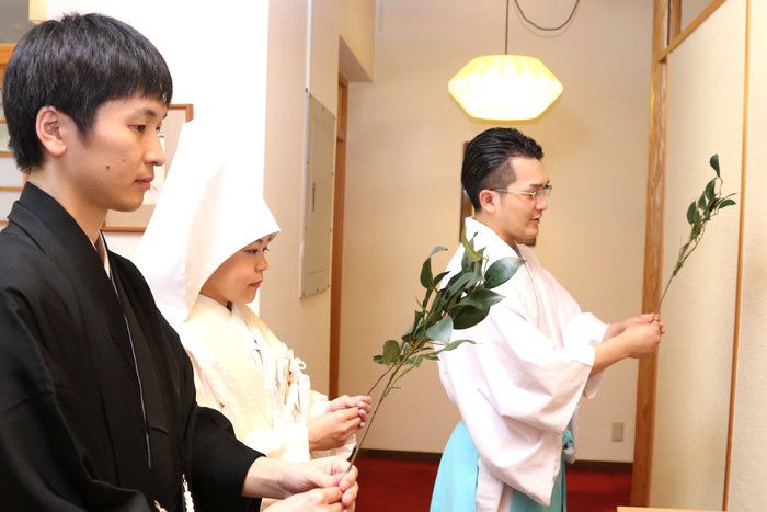 代々木八幡宮を選ばれた理由は、新郎新婦さんどちらも地方出身で地方からの参列者が多く、東京らしいところをということで代々木八幡宮を検討。木々に囲まれ空気もよく、案内されたかたの心温まる対応にお二人は親しみを感じ、ここにしようと決められました。