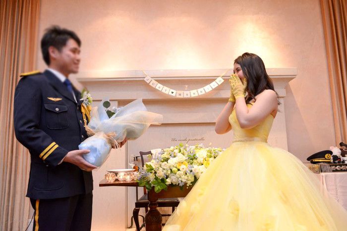 新郎さんの気配り演出、素敵です♡一生忘れられないサプライズですね。