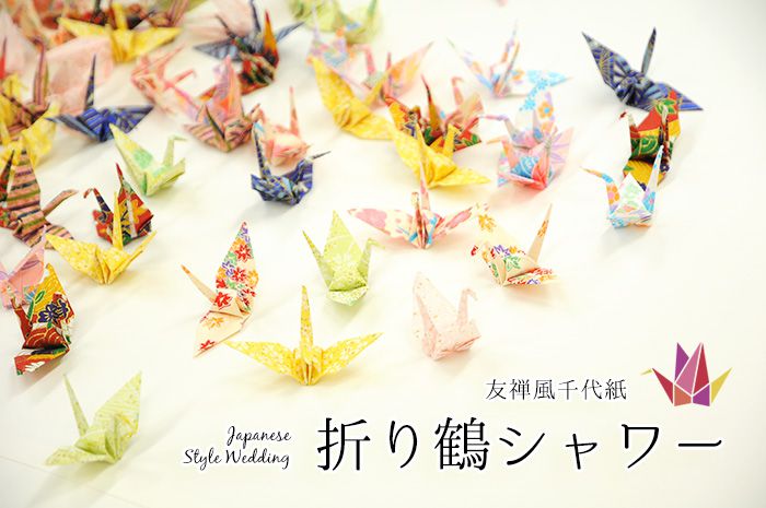 番傘で入場したり、鏡開きをしたり、折る鶴シャワーで祝福してもらったりと色々なアイデアを取り入れて。