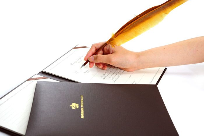 本の形の結婚証明書で宣誓シーンを印象づけて