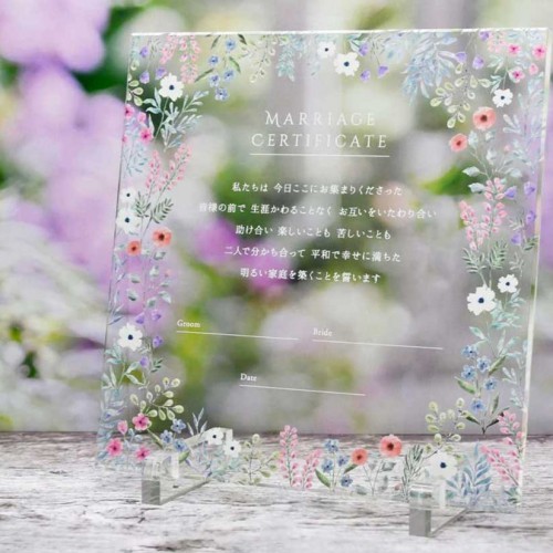 結婚式で欠かせないアイテムの一つ、結婚証明書。新郎新婦二人の誓いの言葉を記す大切なアイテムです。教会式や人前式など、挙式スタイルが多様化するに連れ、結…